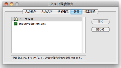 【2】「ことえり環境設定」のウィンドウが開きますので、上部の「辞書」をクリックします。